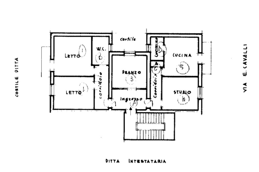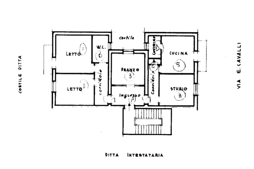 Composto da cinque locali: Ingresso, Salone, Tinello-cucinino, Camera da letto, Cameretta, Studio, Bagno e Ripostiglio.